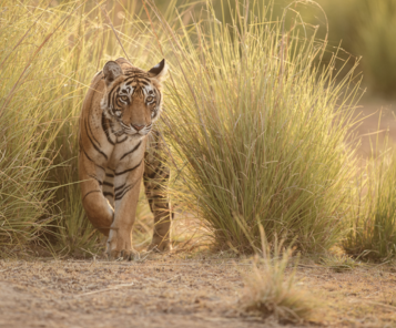 All throughout the year, there are tigers, sambhars, chitals, wild boars, smaller cats, caracals, chinkaras, nilgais, etc. There are also some excellent grasslands in the valleys, which are perfect hiding places for ground birds, smaller animals like tigers, and other big cats.